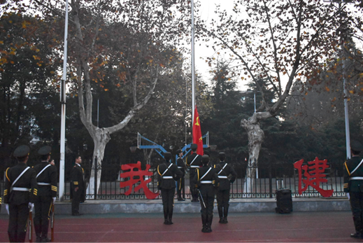 (文/张宇 摄/袁凌灿 田源)为了弘扬爱国主义精神,坚定理想信念,12月4日上午,完美电竞在东校区田径场举行了升旗仪式,全体大一、大二学生参加本次升旗仪式。