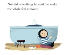 本次“绘声绘色”活动选取的绘本为The Storm Whale(《风暴鲸》),由英国知名插画家和动画导演本吉·戴维斯创作,该绘本不仅获得了首届奥斯卡图书奖,还荣获了2017年荷兰年度图画书。故事讲述了小男孩Noi和爸爸在海边生活,暴风雨来袭后的第二天早上,Noi发现有一只鲸鱼宝宝在海边搁浅,他想救救鲸鱼,于是就把鲸鱼拉回了家里,给鲸鱼洗澡,讲故事,这仿佛是大海送给自己的礼物。爸爸发现秘密以后,没有责怪他,而是和他一起把鲸鱼送回了大海。绘本趣味十足,让小朋友们度过了一段与“风暴鲸”为伴的欢乐时光,同时也学习到beach(沙滩),storm(风暴),rage(愤怒),whale(鲸鱼),sand(沙子),island(岛屿)等与海洋相关的英文词汇。