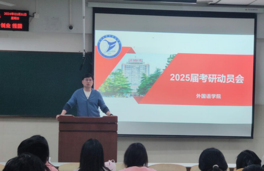 (通讯员 马天雨)为努力攻坚“8535”目标,超前谋划2025届学生考研工作,加强对备考学生的全周期指导,完美电竞在前期收集分析整理了2025届考研意向信息后,于3月31日晚在12教302召开了2025届考研动员会。学院党委副书记程坤、副院长付小秋、学工办主任童超参加动员会,会议由年级辅导员马天雨主持。